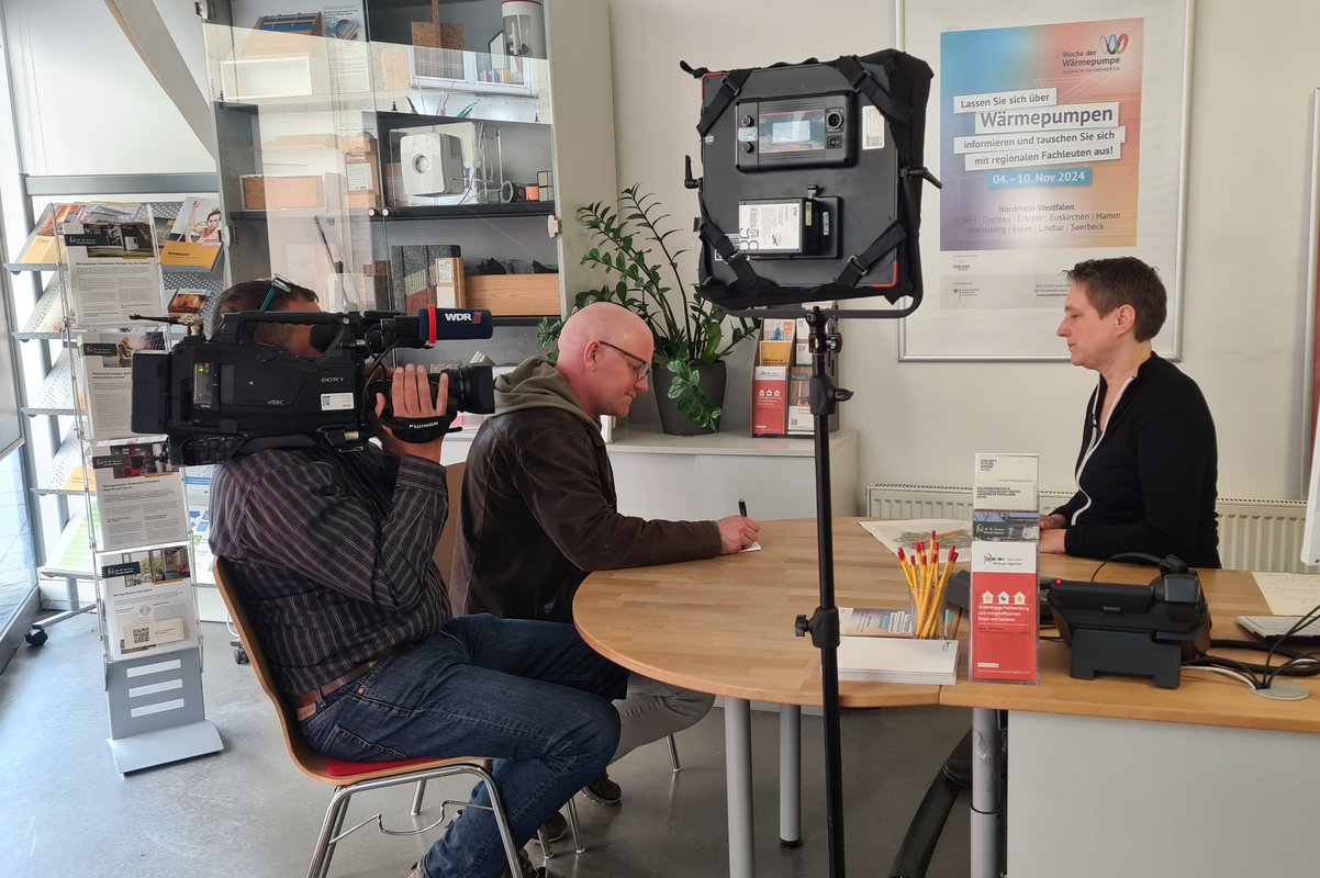 Noch am selben Tag hat der WDR bei uns angeklopft und nach einem Beitrag gefragt. Gemeinsam mit Carmen Ulmen, Koordinatorin Erneuerbare Energien der Stadt Bonn, haben wir die Gelegenheit wahrgenommen, die Bonner Bürgerinnen und Bürger über den aktuellen Stand der Kommunalen Wärmeplanung in Bonn auf dem Laufenden zu halten. Einen Tag später fanden die Aufnahmen mit dem Kamera-Team der WDR Lokalzeit in unserem Büro in der Stadthaus-Loggia und in den Räumen des Programmbüros Klimaneutrales Bonn 2035 statt.