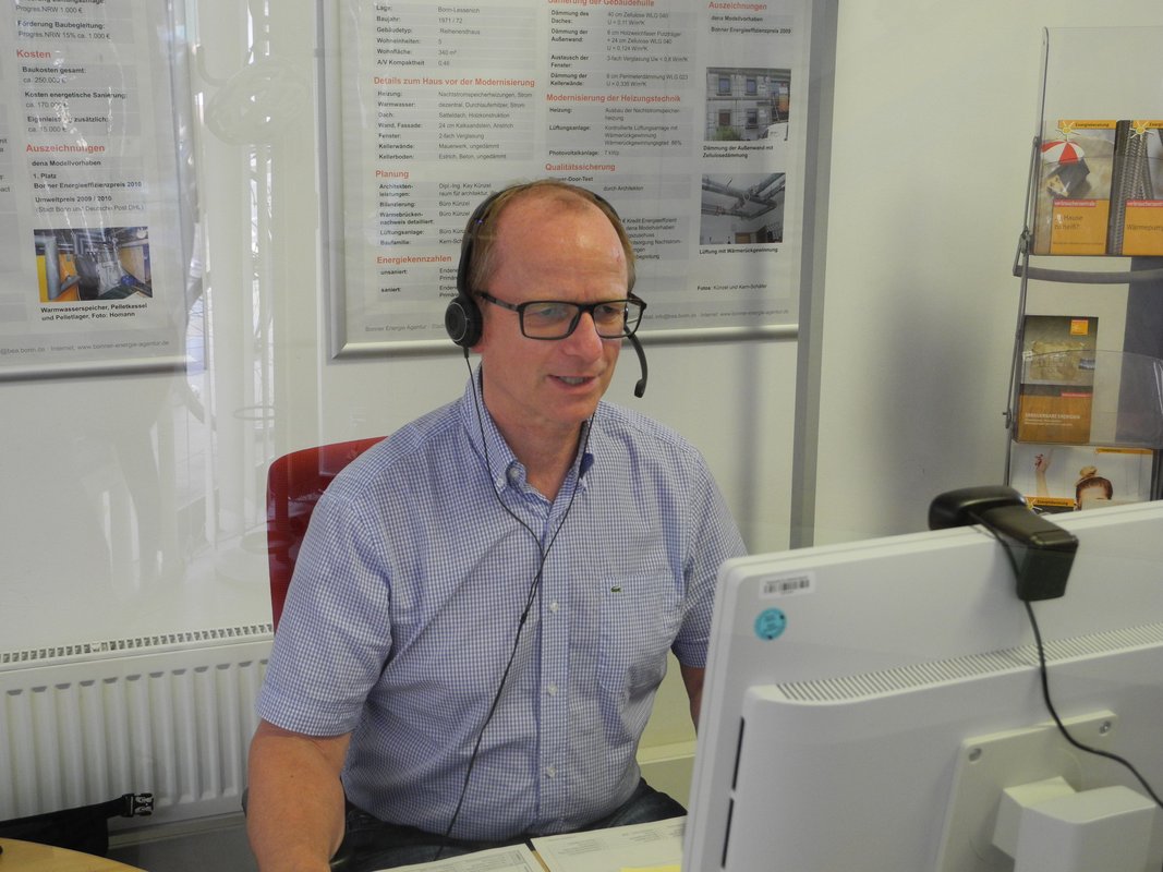 Sie können wählen zwischen der Beratung über das Telefon (02 28) 77 50 60 oder als Video-Chat montags und donnerstags von 8:30 - 12.30 Uhr und von 13.30 - 17:30 Uhr.