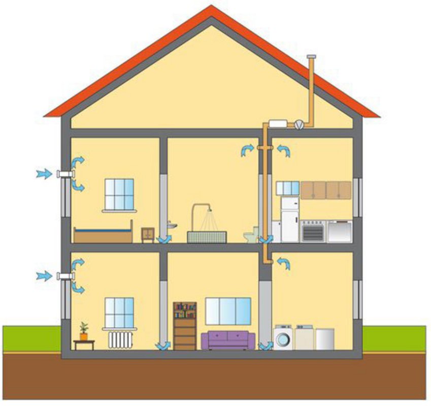 Stattet man das Haus mit einer Lüftungsanlage aus, wird das Haus in unterschiedliche Zonen geteilt:
