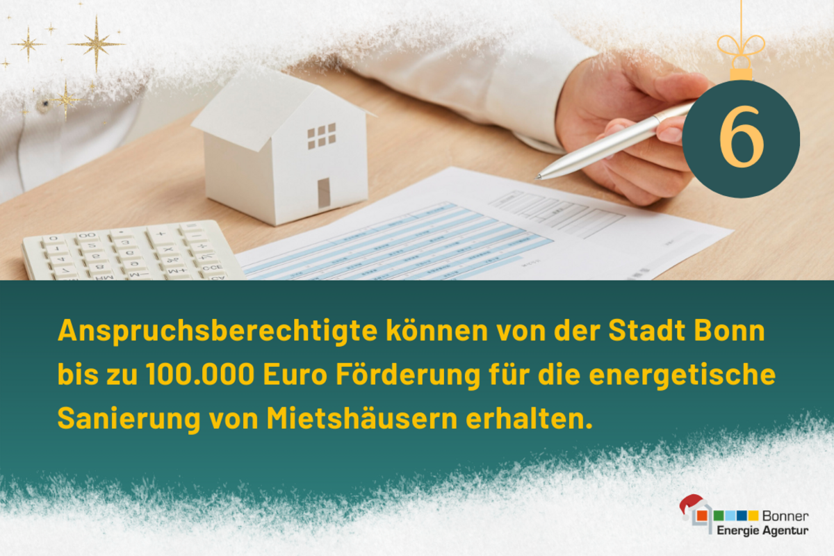 Anspruchsberechtigte können von der Stadt Bonn bis zu 100.000 Euro Förderung für die energetische Sanierung von Mietshäusern erhalten.